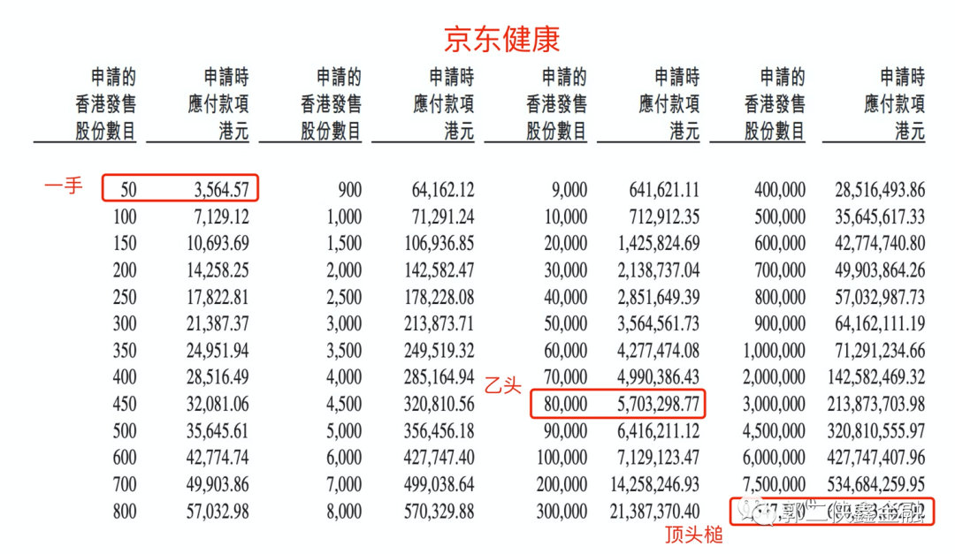 京东健康此次共计发行约3.82亿股新股,国际配售95%,公开发售5%,若公开发售超购14倍或以上少于49倍,公开发售比例将由5%增至9%,超购49倍或以上少于98倍即增至10%,超购98倍或以上则回拨至11%。