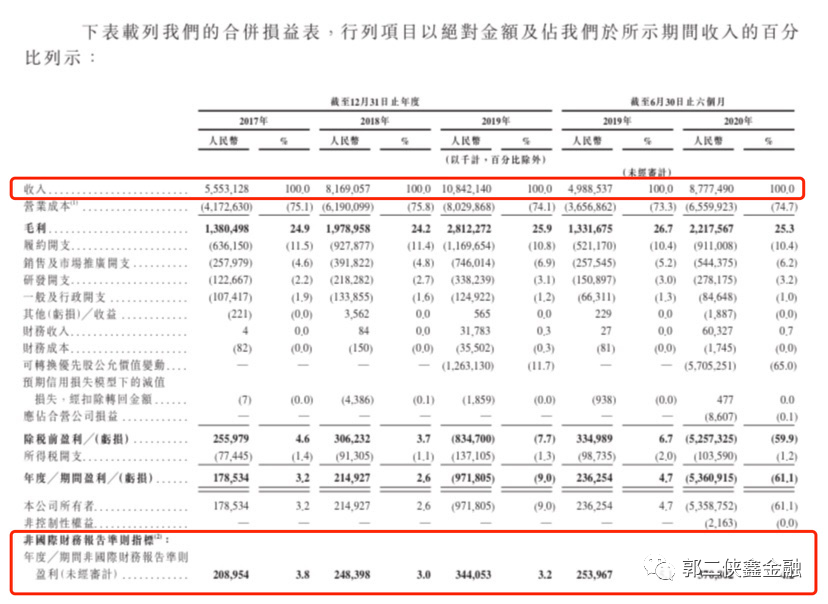 剔除公允价值变动和非经常损益项目,京东健康在2017年至2019年的净利润分别为2.1亿元、2.5亿元、3.4亿元,2020年上半年为3.7亿元。