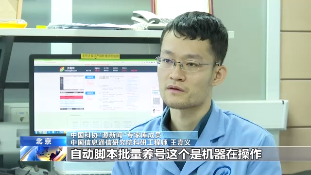 中国科协“源新闻”专家库成员、中国信息通信研究院科研工程师 王嘉义:自动脚本批量养号,这个是机器在操作,是因为对于每一个账号来说,它的登录界面都是一样的,我可以直接录下来我鼠标的各种操作,然后进行登录,然后进行点击各个页面 然后来完成它的一个流量活跃度的提升。