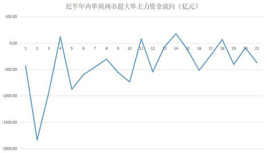 而从近半年内的21个交易周来看,本周超大单主力资金净流出金额处于较低位置。