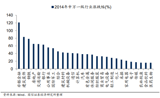 在2014年底,非银金融得到了市场的一致看好。从长期逻辑看,经济转型过程中,资本市场改革不断推进,金融体系从间接融资转向直接融资将带动券商相关业务的发展;从短期市场表现来看,2014底市场交易情绪浓厚,市场对于2015年行情走势颇为乐观,券商是牛市的直接受益者,而且弹性高,预计2015年券商业绩有望得到显著提升。