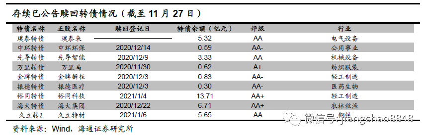赎回方面,振德、溢利、凯龙等42只转债触发赎回。下修方面,目前已有79只转债触发下修。(详见附表1)。