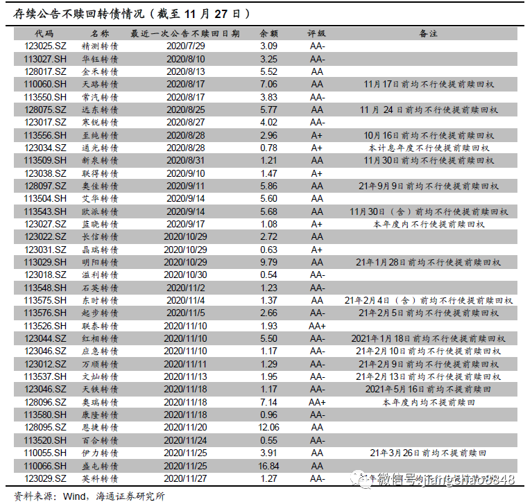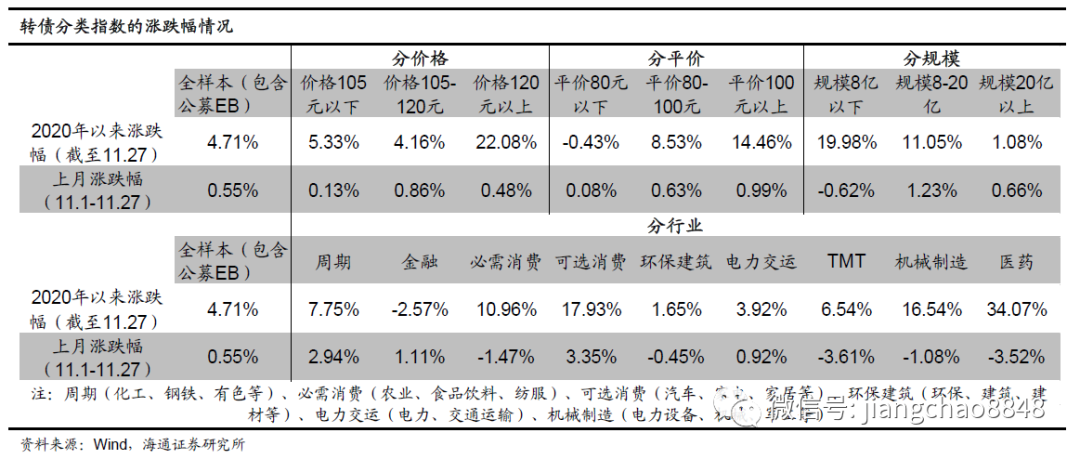 2020年11月转债全样本指数(包含公募EB)上涨0.55%,涨幅小于中证转债指数(0.7%)。