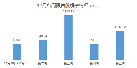 从本周(11月30日-12月4日)来看,Wind数据统计显示,共有47家公司合计42.12亿股限售股上市流通,解禁市值686.40亿元。
