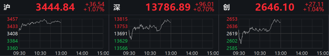 对于A股市场而言,靓丽的PMI数据与央行大额投放无异于是双重利好。截至上午收盘,上证指数午盘上涨1.07%,创业板指涨1.04%。金融板块领涨大市,建设银行涨超5%。北向资金净买入超80亿元。