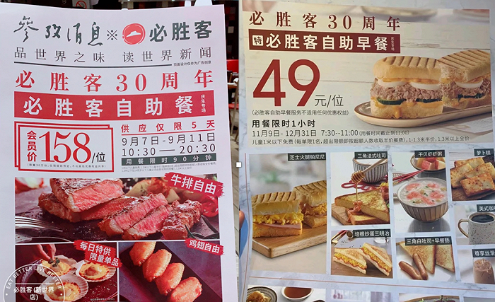 今年以来,必胜客陆续上线多项30周年限定自助活动。4月,必胜客在上海部分门店推出了99元/128元的限时自助餐;6月,则在全国部分门店上线了158元的限时自助;9月,必胜客在多家门店推出了价格在39-59元之间的自助早餐;11月,必胜客甚至重启了2009年下线的自助沙拉吧。