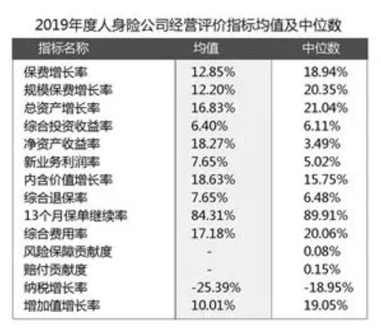 在披露2019年度保险公司法人机构经营评价结果的同时,中国保险行业协会还披露了评价险企经营情况主要参考指标的均值和中位数。据《金融时报》记者梳理,从保费增长率来看,2016年、2017年、2018年、2019年均值分别为9.91%、13.74%、11.36%、11.54%,中位数与均值相差不大,处于比较稳定的状态。2019年有66家公司保费收入实现正增长。
