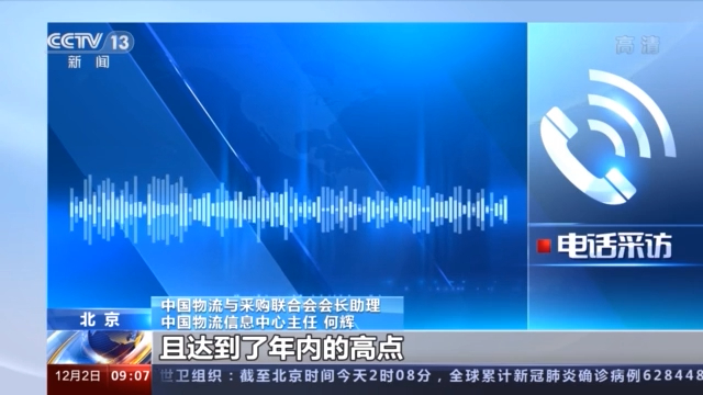中国物流与采购联合会今天(12月2日)发布了11月份中国物流业景气指数。指数升至年内高点,显示物流行业加快回升,尤其是快递快运业业务量再创年内新高。