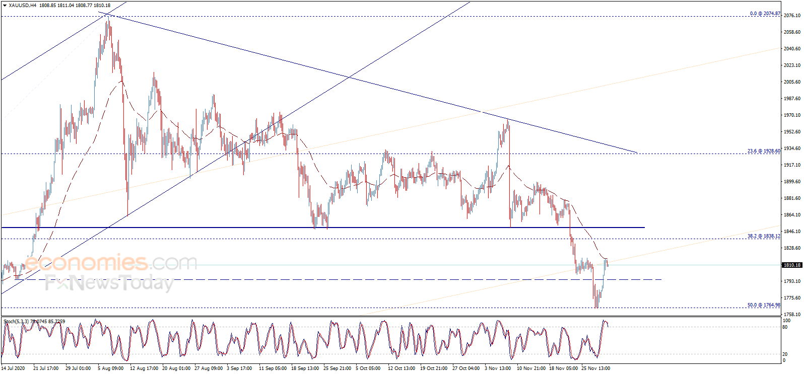 金价昨日收盘位于1805.00美元/盎司水平上方,但从4小时图来看,金价在EMA 50指标处面临坚固阻力,这推动金价暂时呈现一些看空倾向,不过随后金价料重新呈现看涨倾向。