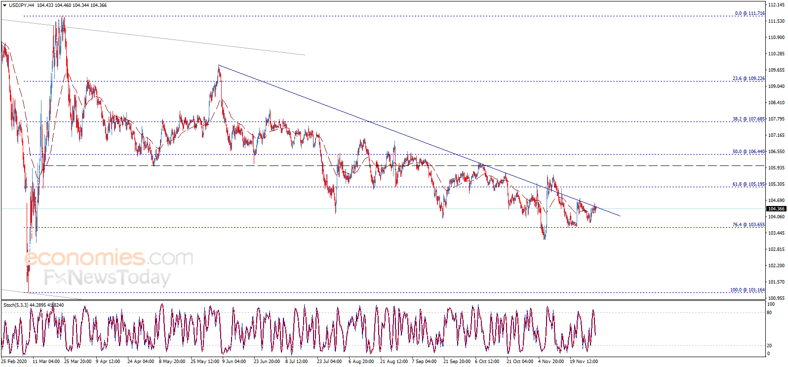 预计今日美元/日元交投将位于支撑位103.65以及阻力位105.00之间。