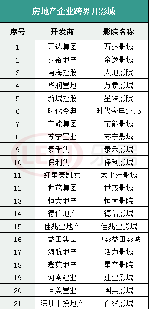 据广州乐居不完全统计,截至目前,已有超过二十家房企涉足院线。