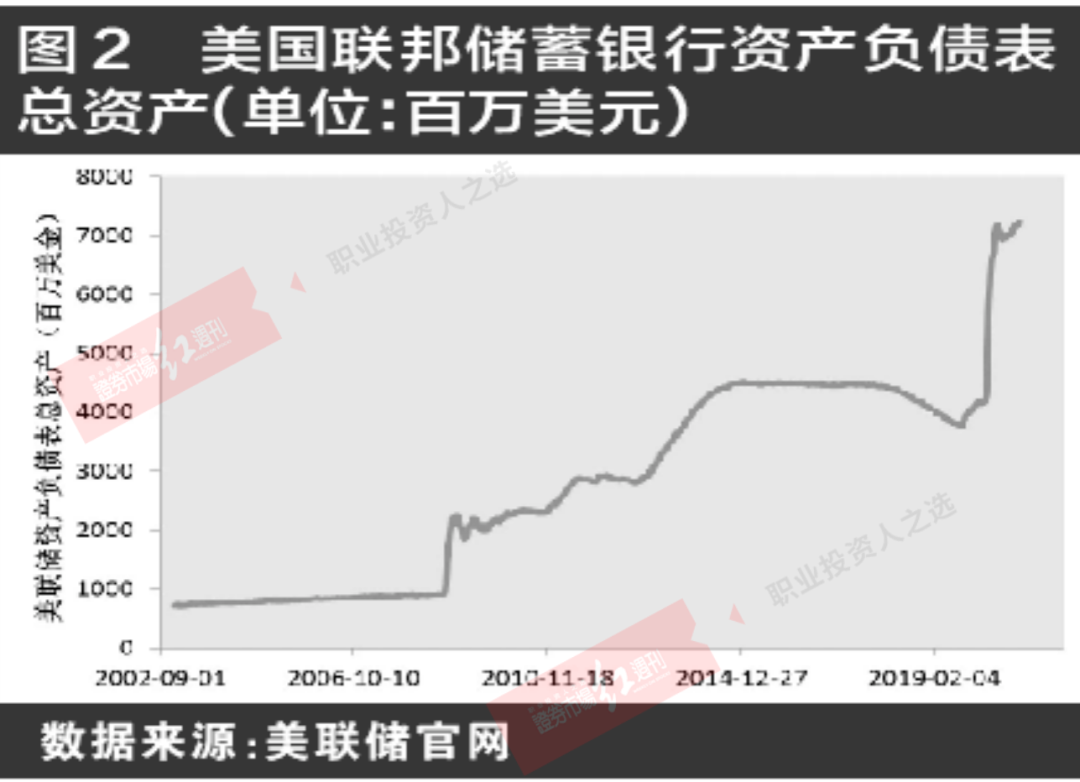 自从疫情暴发以来,美联储的资产负债表从4万亿美元跃升到了7万亿美元,美联储主席鲍威尔用历史上最激进的手段向市场注入了天量流动性,而这些流动性也是美国股市屡创新高的动因之一(见图2)。