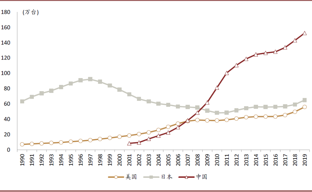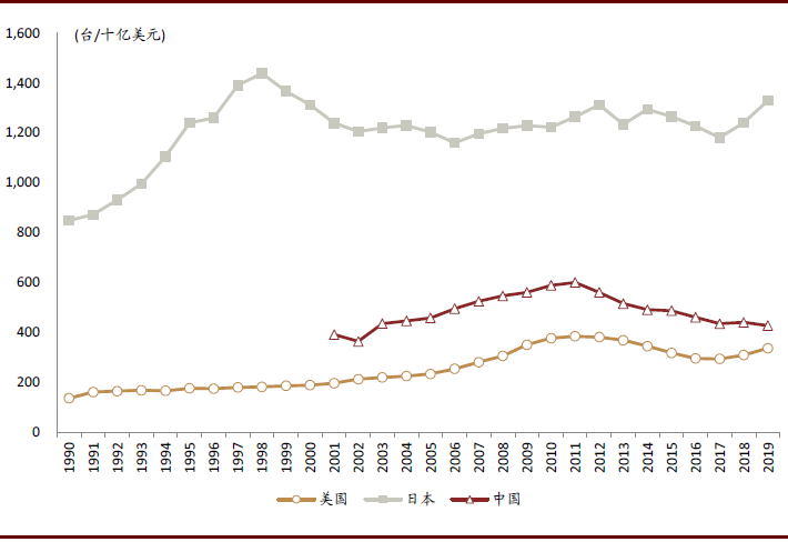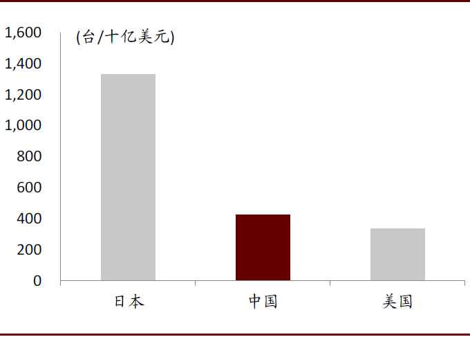 资料来源:国家统计局,BEA,日本经济产业省,中金公司研究部 注:为了更直观地表现保有量趋势,统一按2019年年末兑美元汇率