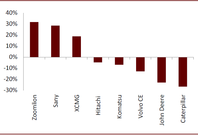 近两年我国挖掘机由净进口转为净出口。2018年以前,我国挖掘机出口量远低于进口量,其中2010年我国挖掘机净进口38,794台,当年出口仅2,972台。近些年随着海外需求上升及产品品质提高,我国挖掘机出口量快速增长。2020年1-10月,我国挖掘机出口量同比增长26%至27,127台,而前9月进口量同比下降22%至10,049台,2020年净出口有望接近20,000台。我们预计随着国内主机厂全球影响力提升,未来我国挖掘机出口有望继续保持快速增长。