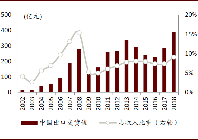 图表:2018年我国工程机械出口交货值占收入9.1%