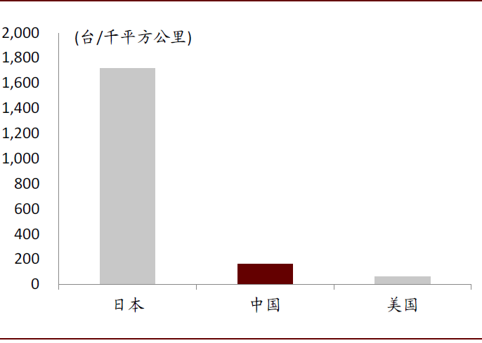 图表:中美日单位国土面积挖掘机保有量(2019)