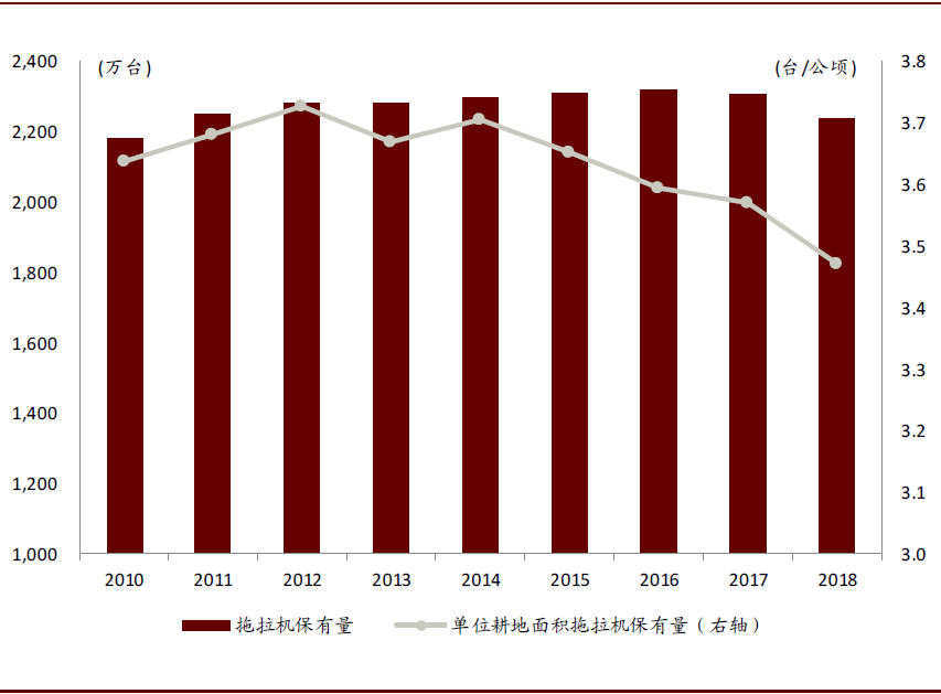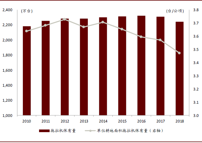 图表:2014-2018年单位耕地面积拖拉机保有量持续下滑