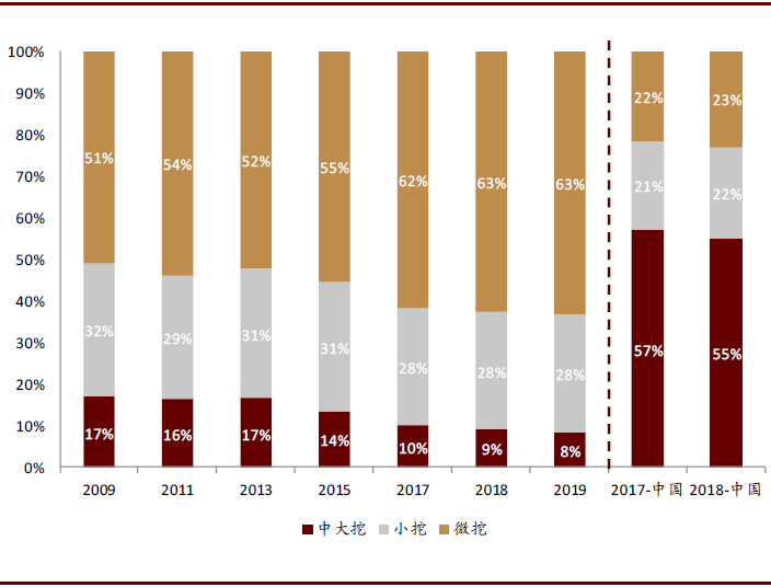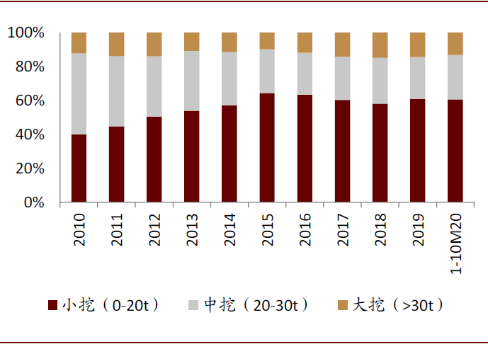 过去十年挖掘机需求结构变化,小挖保有量占比提升