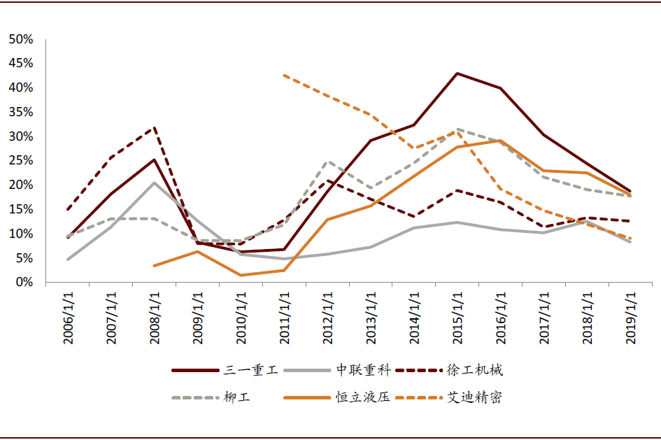 图表:2019年国内工程机械厂商海外收入占比约10%-20%