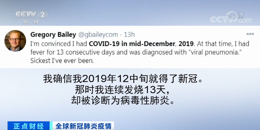 “我确信我2019年12中旬就得了新冠。那时我连续发烧13天,却被诊断为病毒性肺炎。”