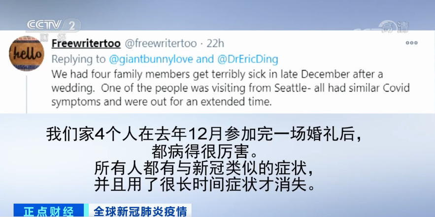 除了美国网友,也有其他国家的网友表示,自己在去年12月就出现了类似新冠的症状。