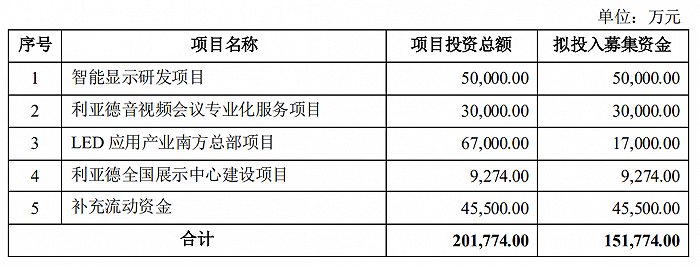 利亚德(300296.SZ)12月3日晚间称,公司计划向特定对象发行不超过4亿股(含),募资不超过15.1774亿元,投入“智能显示研发项目”、“利亚德音视频会议专业化服务项目”、“LED应用产业南方总部项目”、“利亚德全国展示中心建设项目”、“补充流动资金”,分别拟投入金额为5亿元、3亿元、1.7亿元、9274万元、4.55亿元。相关方案需在12月21日的股东大会上投票。