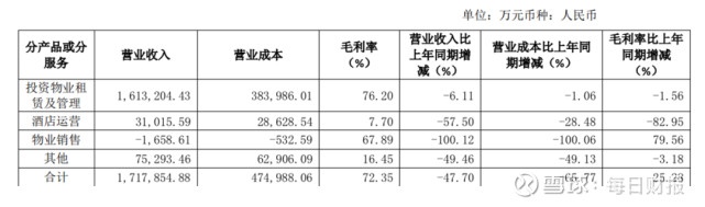 实际上,2019年万达商管营收就已出现大幅下降,当年营收为786.56亿元,同比下降26.18%;其中,主营业务收入为782.79亿元,同比下降24.34%,营业成本为361亿元;毛利率为53.88%,较2018年同期增加2.78个百分点。