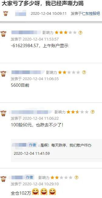 有投资者发帖问“大家亏了多少,我已经声嘶力竭”。有人留言称,29万没了。