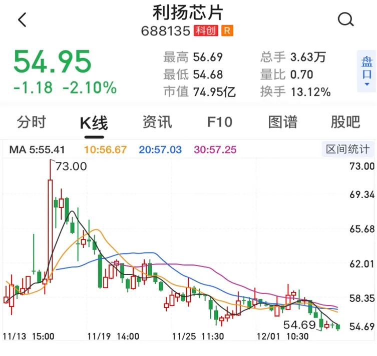值得一提的是,在利扬芯片的调研机构名单中,有明星基金经理冯明远,全国社会保障基金也参与其中。该股11月在科创板上市后,较发行价上涨近250%,最新收盘价为54.95元,略高于上市以后的股价最低点。