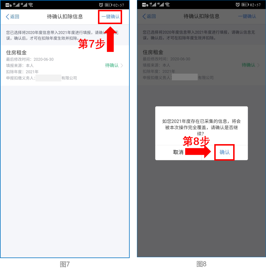 ④点击“一键确认”后,信息则提交成功。不需要重复确认,否则之前确认的信息会显示已作废,系统会以最新确认的信息为准。