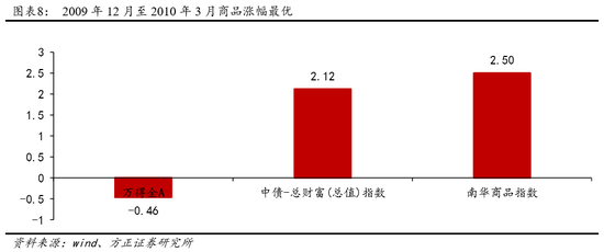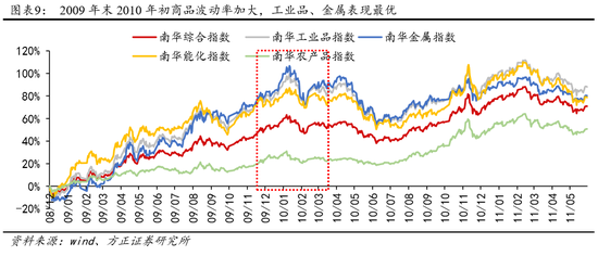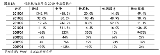 从大类资产表现来看,2009年末至2010年初商品表现略优于债券,债券表现优于权益。商品方面,南华商品指数在2009年12月至2010年3月涨幅2.50%,商品细分类别表现分化,工业、金属表现最优,涨幅分别达到6.78%和5.47%,农产品表现落后,涨幅-0.41%。此外,商品走势波动显著加大,体现出市场对于经济V型反转过后的经济预期存在分歧,市场情绪波动较大。债券方面,中债总财富指数涨幅2.1%,长端利率在此期间先升后降,十年国债收益率由2009年12月初的3.57%上行至2010年1月中旬的3.70%后见顶回落,十年国债收益率在3月降至3.36%。权益方面,市场分化明显,万得全A同期涨幅-0.46%, 沪深300下跌4.73%,中小板指上涨7.79%,结构性行情特征显著。从行业来看,申万一级行业中,16个行业同期收涨,其中TMT行业涨幅远超其他行业,电子、传媒、计算机涨幅均超20%,此外,休闲服务、纺织服装涨幅较高,分别达到15.45%和11.70%。总体而言,年末年初市场商品高位波动,债市先跌后涨,权益存在结构性机会。