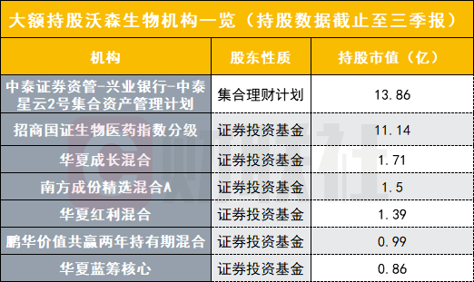 其中根据招商国证生物医药指数分级证券投资基金三季报披露的信息显示,持股的沃森生物为该基金第四大重仓股,市值按照当前计算为11.14亿。