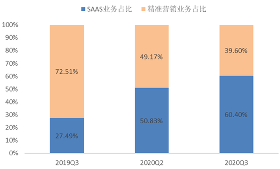 若不是真的看到了SAAS服务的增长态势和盈利能力,谁会主动在一年时间里就完全放弃了曾经占营收比例高达8成的精准营销业务,转而全力转型SAAS服务?