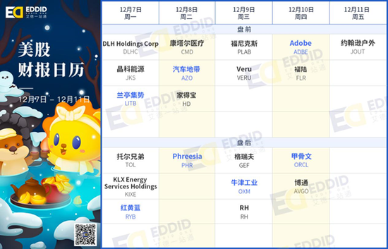 个股财报方面,艾德证券期货摘录了本周部分预发布财报的公司,以供各位投资者参考: