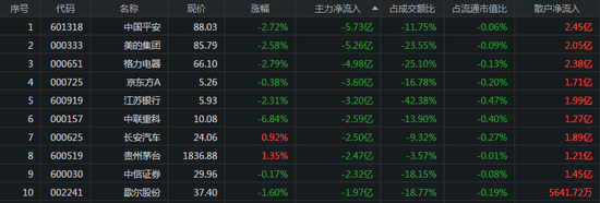 中国平安、美的集团、格力电器分别遭主力资金卖出13.41亿元、8.99亿元、6.06亿元。