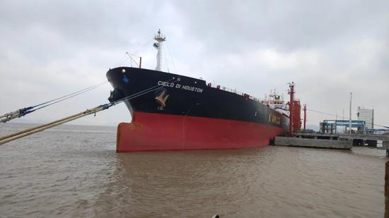 12月6日13时,Cielo Di Houston号油轮缓缓驶离舟山港域世纪太平洋1号泊位前往新加坡,其装载的3.7万余吨92号汽油是浙石化出口的首船成品油。