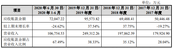 易点天下招股书称,应收账款占营收比例逐年上升主要由于2019年末部分客户应收账款增加较大,如(1)应收第一大阿里巴巴中,主要的交易主体Alibaba.comSingaporeE-CommercePrivateLimited账期为开票后60天,公司对其2019年余额为18,829.06万元,但该客户为公司2019年6月新发展的客户,交易金额仅为7个月的收入,所以应收账款余额占当年收入比例较大;(2)应收第四大CandymobiInformationTechnologyCo.,Limited2019年末应收账款余额为6,413.70万元,2019年交易额为9,568.41万元,应收账款余额占当年收入比例67.03%,占比较高主要由于公司与该公司的交易主要集中在四季度,第四季度收入为6,143.62万元,占全年收入比例64.21%,该公司信用期为90天,所以2019年末余额占全年收入比例较高。