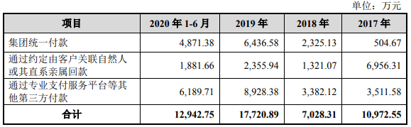 2017年-2019年及2020年1-6月,易点天下第三方回款的金额分别为1.10亿元、7028.31万元、1.77亿元和1.29亿元,占公司当年因业务产生的交易流水的比例分别为4.56%、2.74%、5.10%和5.69%。