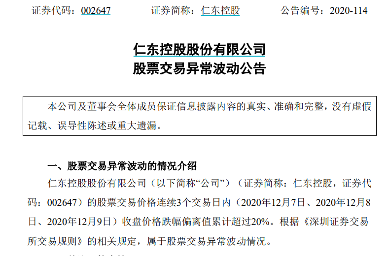 9日晚间,仁东控股发布公告: