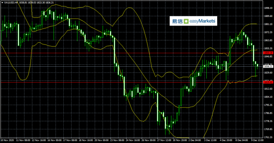 12月10日,昨日因为受到美国财政刺激计划谈判陷入僵局的影响,市场风险厌恶情绪升温美元指数上涨,而美股则从纪录位置回落。黄金表现出人意料在跌破1850美元关键支撑位置后,加速下跌,最低触及1825美元附近,如此宣告了黄金此轮上涨的结束。