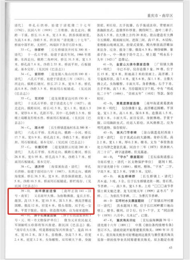 同时,记者也从《中国文物地图集·重庆分册(下)》第43页,左下角的内容中,确定了南坪大佛的身份。