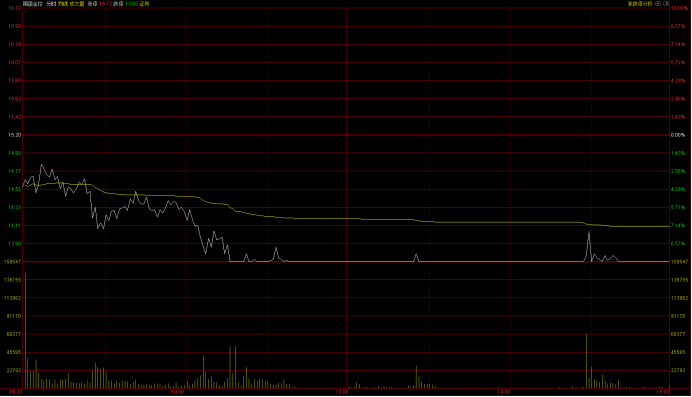在同板块个股渐次走弱后,作为龙头股的国盛金控仍然顽强抗争,在板块内其余个股大多已跌回启动前价格的同时,国盛金控在高位维持横盘震荡达一周时间。昨日早间一度再次尝试向前高17.5元发起冲击,盘中大涨逾5%,无奈跟风者寥寥,在突破失败后股价掉头向下,日内回落近10%。