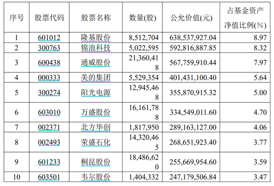 (广发高端制造三季度末重仓股情况,图片来源:基金公告)