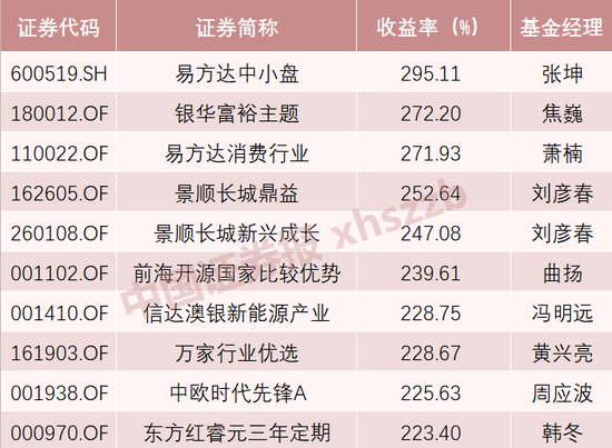 (最近五年收益率排名前十的基金,数据来源:Wind)