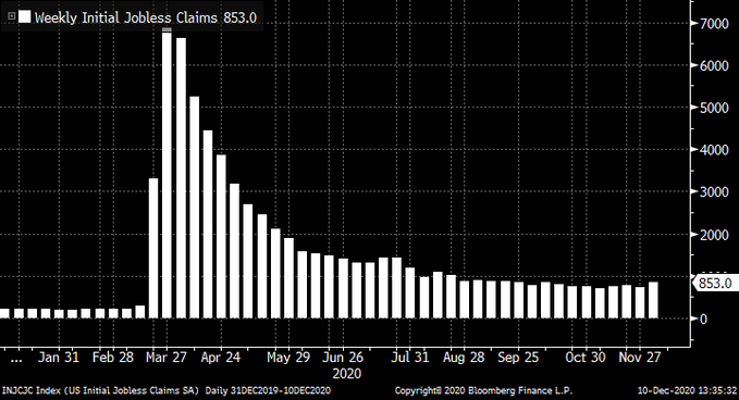 周四公布的最新初请数据显示,上周美国首次申请失业金人数激增,超过了大多数经济学家的预期,并达到了9月份以来的最高水平,这表明为遏制大流行病而实施的更大规模企业停工措施正在导致新的失业浪潮。