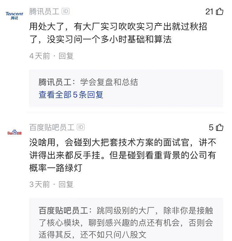 这当然不能就此代表两个大厂的招聘标准,只是无论哪一种答案,都逃不出这个一切都以最现实的功利思维来衡量的框架。