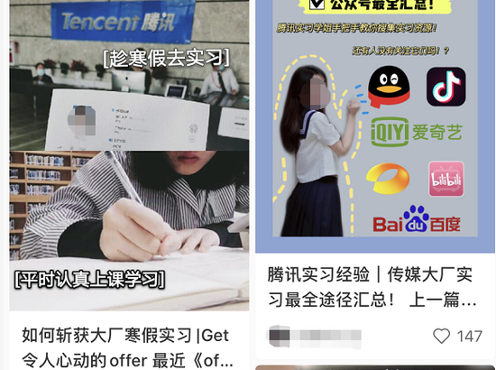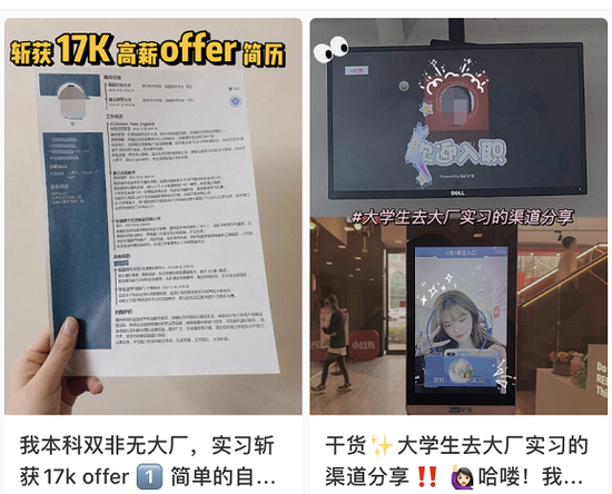 在豆瓣职场小组、小红书、B站等社区里,永远有无数年轻人在别人“拿到大厂offer了”的帖子和“大厂实习一日”vlog下面蹭欧气;