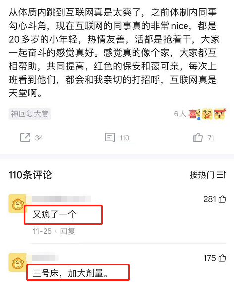 但比起以前,现在的“螺丝钉”在网上互通有无的频率太高了。于是互联网大厂打工人开始在这种氛围里,诛心起了自己: