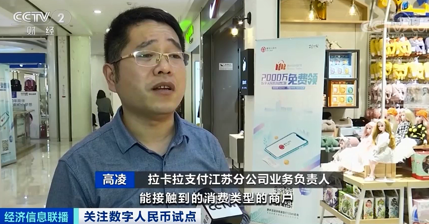拉卡拉支付江苏分公司业务负责人 高凌:随着数字化货币的推广,应该能涉及到,我们目前能接触到的消费类型的商户,方方面面几乎都会能渗透到。