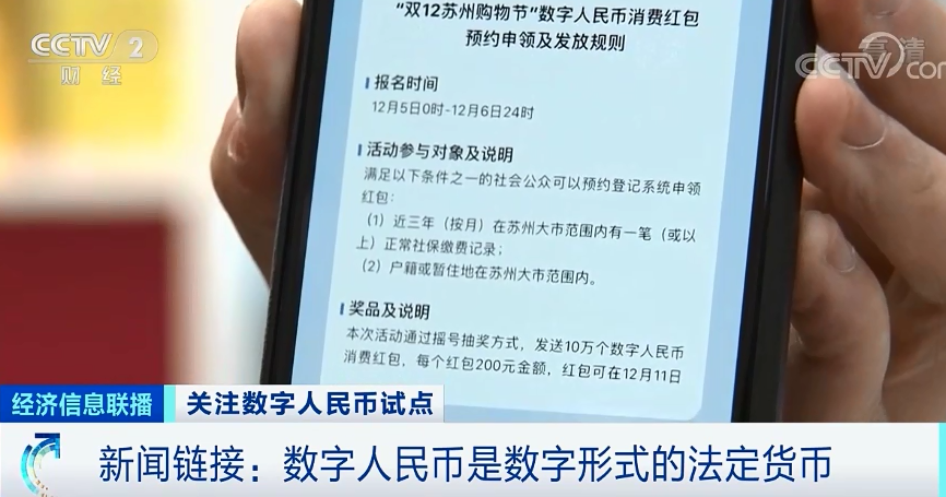 10月,深圳市率先开展了数字人民币红包发放试点。这次在苏州开展的数字人民币消费红包活动,是数字人民币研发过程中一次新的测试,并不意味着数字人民币正式落地。